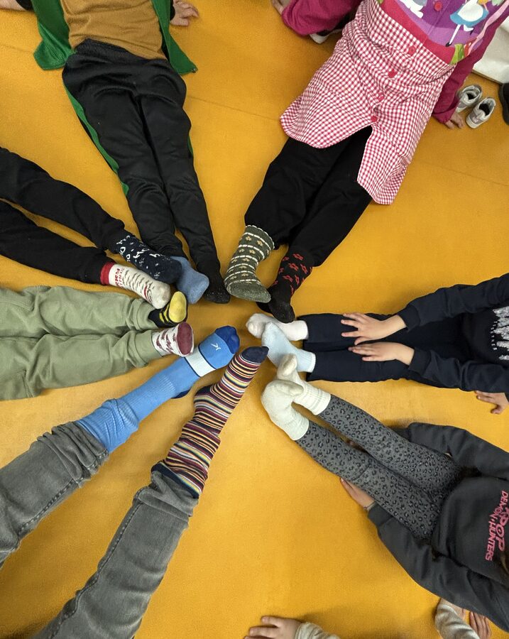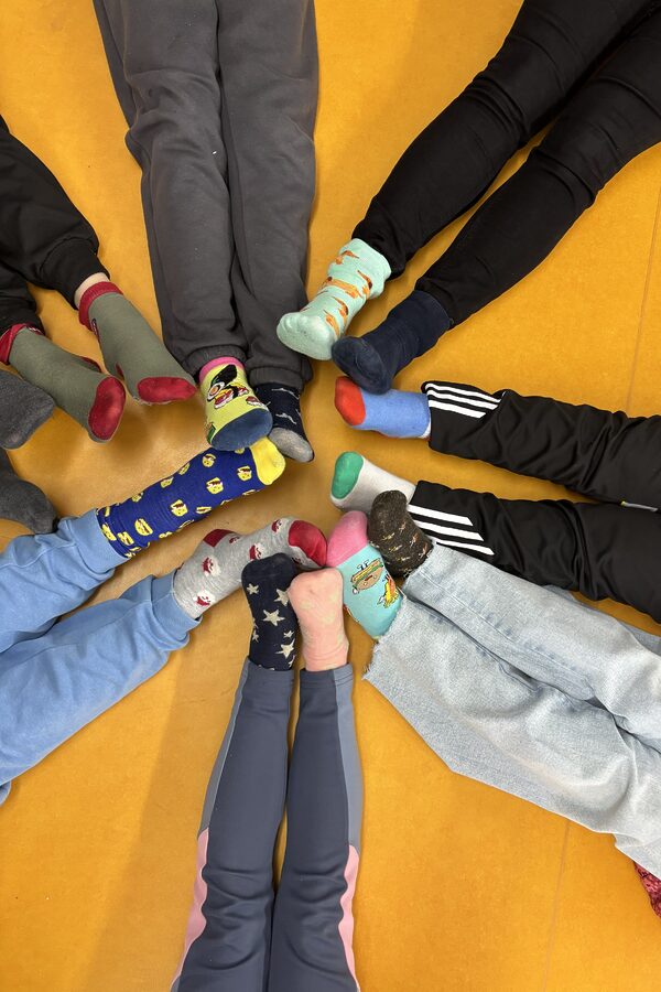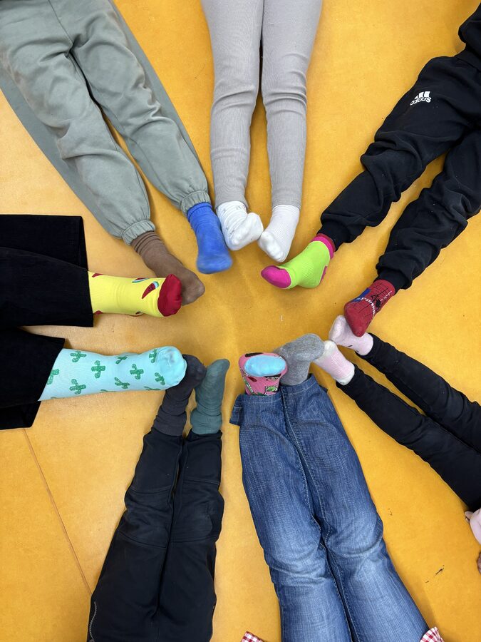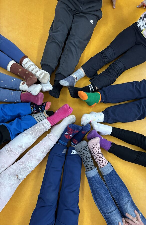 Como todos los años nuestro colegio realiza actividades para visibilizar, este alumnado, con el fin de que toda la comunidad educativa conozca sus diferencias y colabore en la adaptación efectiva de ese alumnado al centro y a la sociedad. Este curso el viernes 20 de marzo, después del recreo, nos hemos reunido todos por clases formando círculos con los calcetines desparejados y un círculo final de todo el alumnado, como forma de sensibilización sobre la diferencia y la integración de el alumnado con síndrome de DOWN .